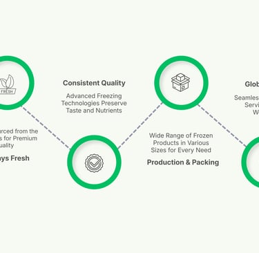 We provide top-quality frozen fruits and vegetables, sourced with care and processed using modern freezing technology to maintain their natural flavor, texture, and nutritional integrity ideal for both commercial and retail needs.